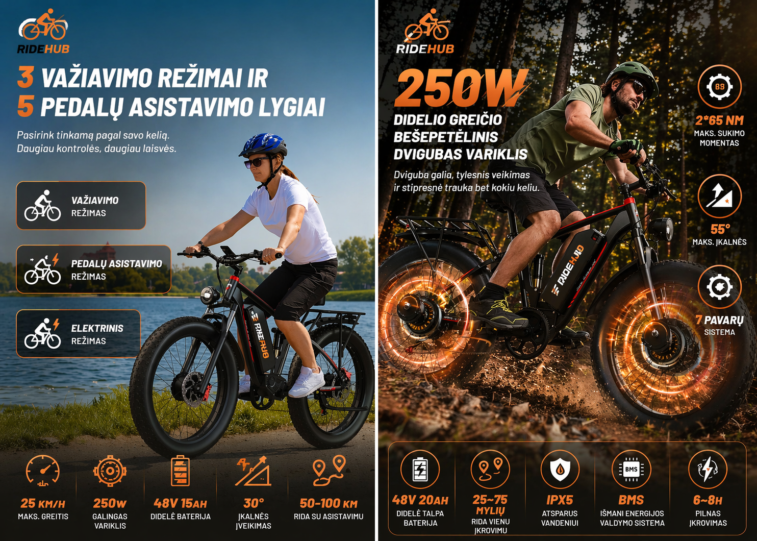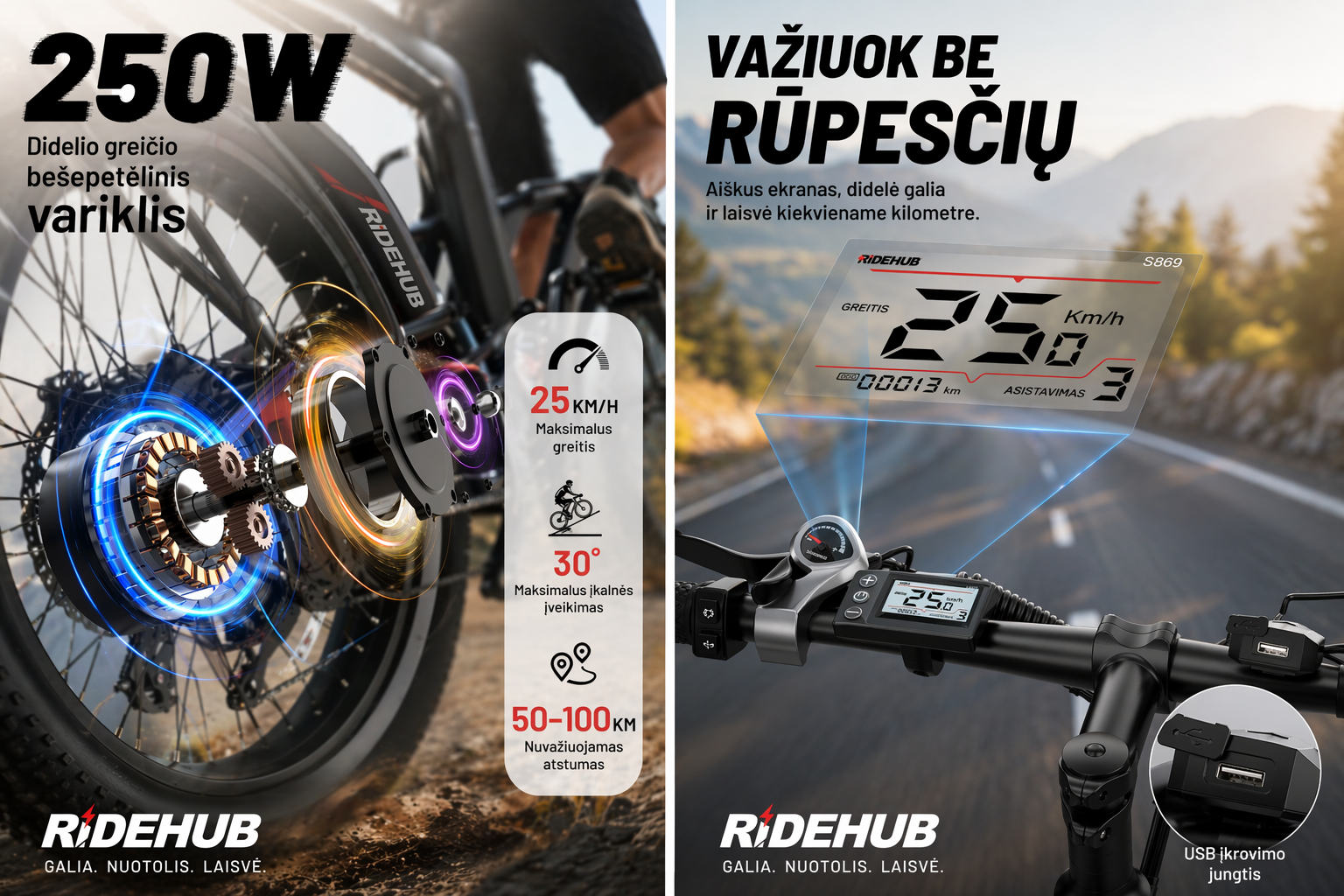 DUOTTS S26 yra modelis tiems, kurie ieško ne tiesiog elektrinio dviračio, o rimtesnio varianto su daugiau galios ir universalesniu pritaikymu. Šis dviratis išsiskiria dviem varikliais, kurie suteikia stipresnį įsibėgėjimą, daugiau sukimo momento ir geresnį pravažumą sudėtingesnėse situacijose. Tokia komplektacija ypač tinka važiuojant įkalnėmis, nelygesne danga ar tada, kai norisi užtikrinto važiavimo ne tik mieste, bet ir už jo ribų.