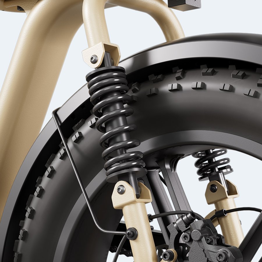 R7 elektrinis fat bike turi Shimano 7 pavarų sistemą, kuri leidžia lengviau prisitaikyti prie skirtingo važiavimo tempo ir maršruto. Priekiniai ir galiniai hidrauliniai diskiniai stabdžiai suteikia patikimą stabdymą, o priekinė šakės amortizacija kartu su galiniu amortizatoriumi padeda geriau sugerti kelio nelygumus ir užtikrina patogesnį važiavimą.