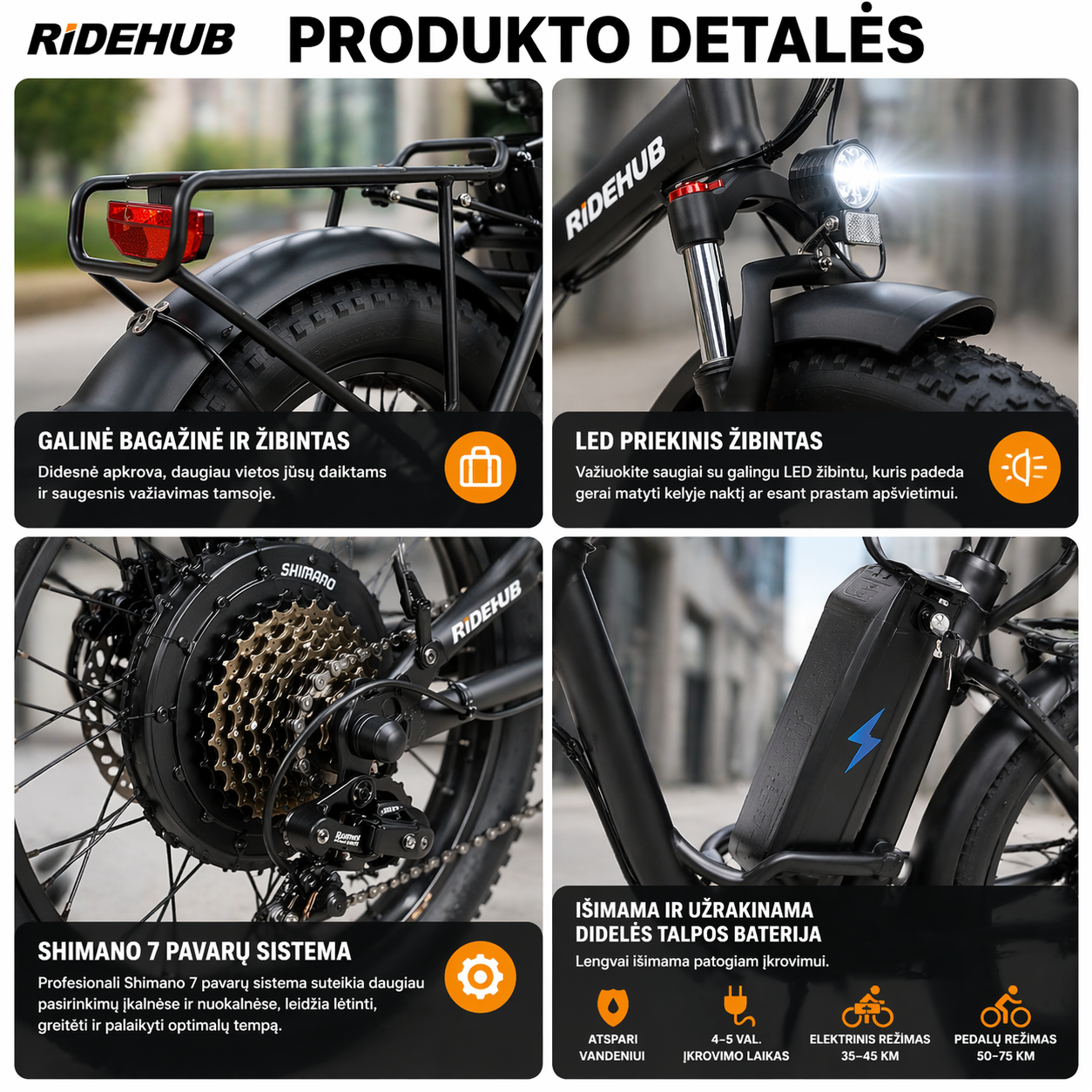 Kadangi šiame matomame fragmente aiškiai matosi variklio galingumo skirtumas tarp rinkų, e-shopui protingiausia rašyti 250W versija, jei orientuojiesi į EU rinką. Nereikia klijuoti 750W, jei po to klientas gaus kitą komplektaciją. Čia geriau būti tiksliam negu gudriam. Pagal šiuo metu matomą informaciją, saugiausia palikti akcentą į 48V sistemą, sulankstomą konstrukciją, 20 colių formatą ir aliuminio rėmą, o ridą nurodyti tik tada, kai turėsi aiškią baterijos talpą